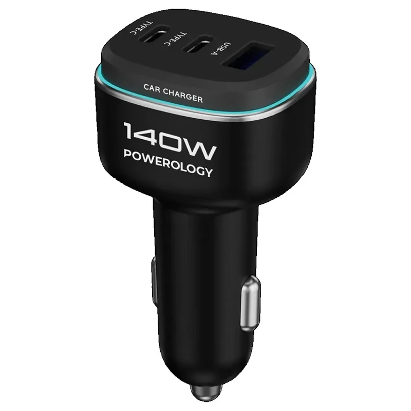 شارژر فندکی 140 وات 3 پورت برند Powerology مدل PCCSR025BKGY