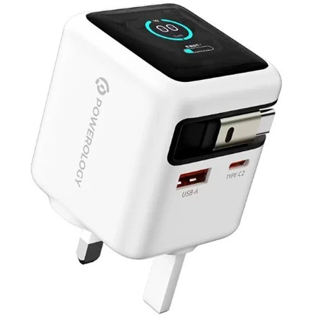 شارژر دیواری گان 70 واتی با کابل تایپ سی برند Powerology مدل Halo PWCUQC051WH