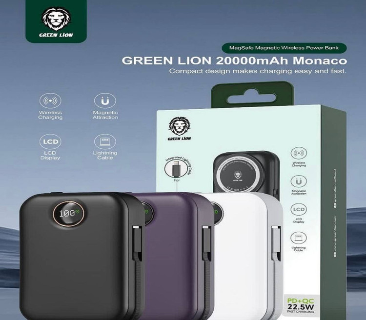 پاور بانک ۲۰۰۰۰ برند Green lion مدل MONACO MAGSAFE
