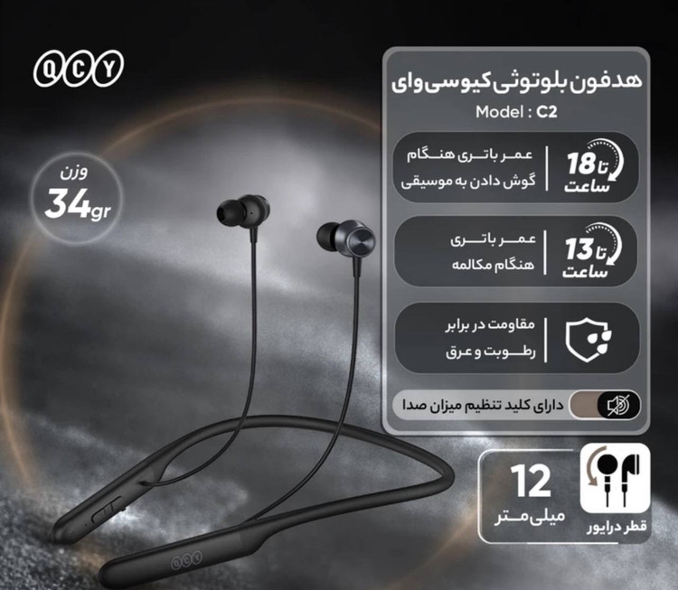 هندزفری گردنی برند QCY مدل C2 دو گوشی