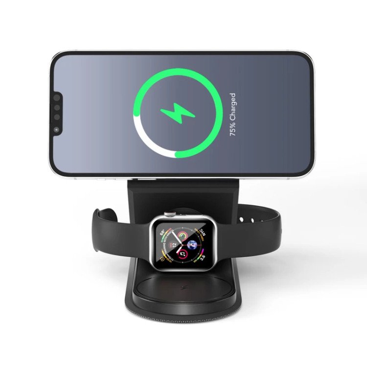 پشتیبانی همزمان از سه دستگاه گوشی (MagSafe)، اپل واچ و ایرپاد/هدفون
