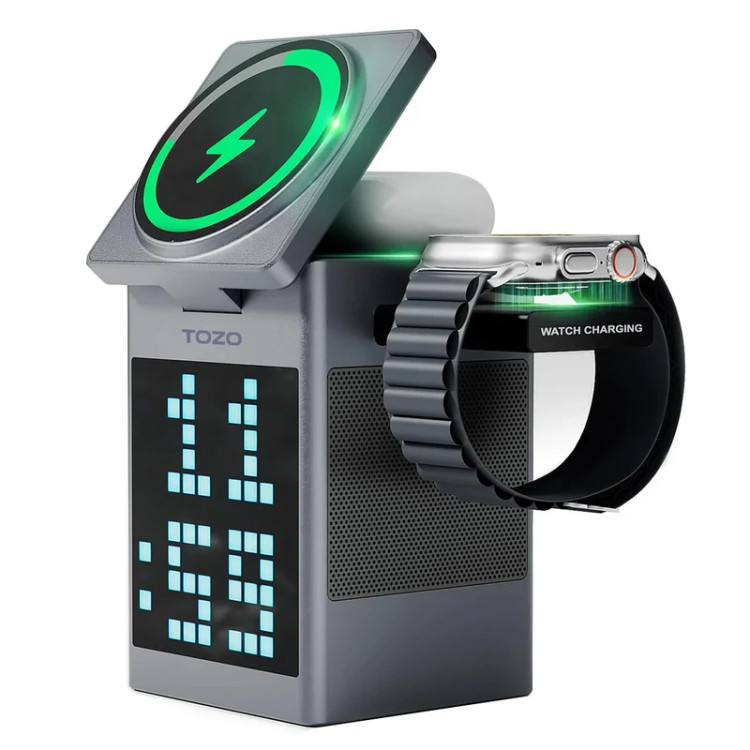توضیحات شارژ همزمان چند دستگاه: امکان شارژ گوشی آیفون، ایرپاد و ساعت هوشمند به صورت همزمان. اسپیکر با کیفیت: صدای پرقدرت و واضح برای محیطهای مختلف. صفحه نمایش دیجیتال: نمایش ساعت و وضعیت شارژ دستگاهها. طراحی ارگونومیک: ابعاد مناسب برای حمل راحت و استفاده در سفر. بلوتوث 5.3: اتصال سریع و پایدار به دستگاهها. قابلیت فست شارژ: شارژ سریع برای گوشی، ایرپاد و ساعت هوشمند. متریال با کیفیت بالا: بدنه مقاوم و با دوام. مناسب برای محیطهای مختلف: استفاده در خانه، دفتر کار و مهمانیها.