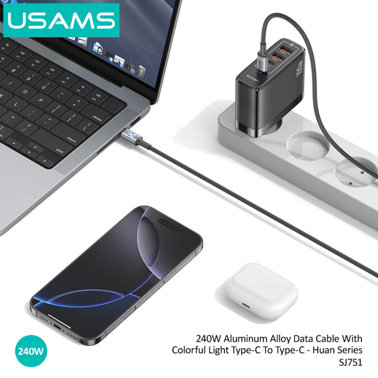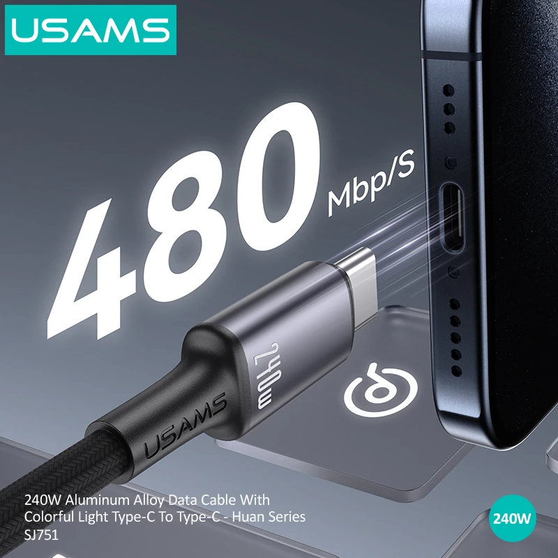 کابل تبدیل ۲سر تایپ سی برند USAMS مدل SJ751-240W طول 1.2 متر