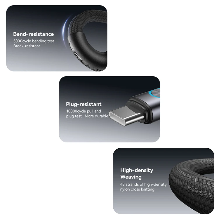 | سایر توضیحات کابل | کابل دو سر Type-C با طراحی حرفهای و عملکرد پایدار / پشتیبانی از فناوری شارژ سریع Power Delivery تا توان 240 وات / انتقال داده با سرعت بالا تا 480Mbps / طول استاندارد 1.2 متر برای استفاده روزمره / روکش نایلونی بافتهشده مقاوم در برابر کشیدگی و گرهخوردگی / کانکتورهای آلومینیومی بادوام با طراحی CD Pattern و نور RGB / مجهز به چیپ هوشمند داخلی برای مدیریت جریان و جلوگیری از داغ شدن / مقاومت بالا در برابر خمشدنهای مکرر و افزایش طول عمر کابل / سازگار با انواع گوشی، تبلت و لپتاپ مجهز به پورت Type-C / کیفیت ساخت بالا با ارزش خرید قابل توجه / |
