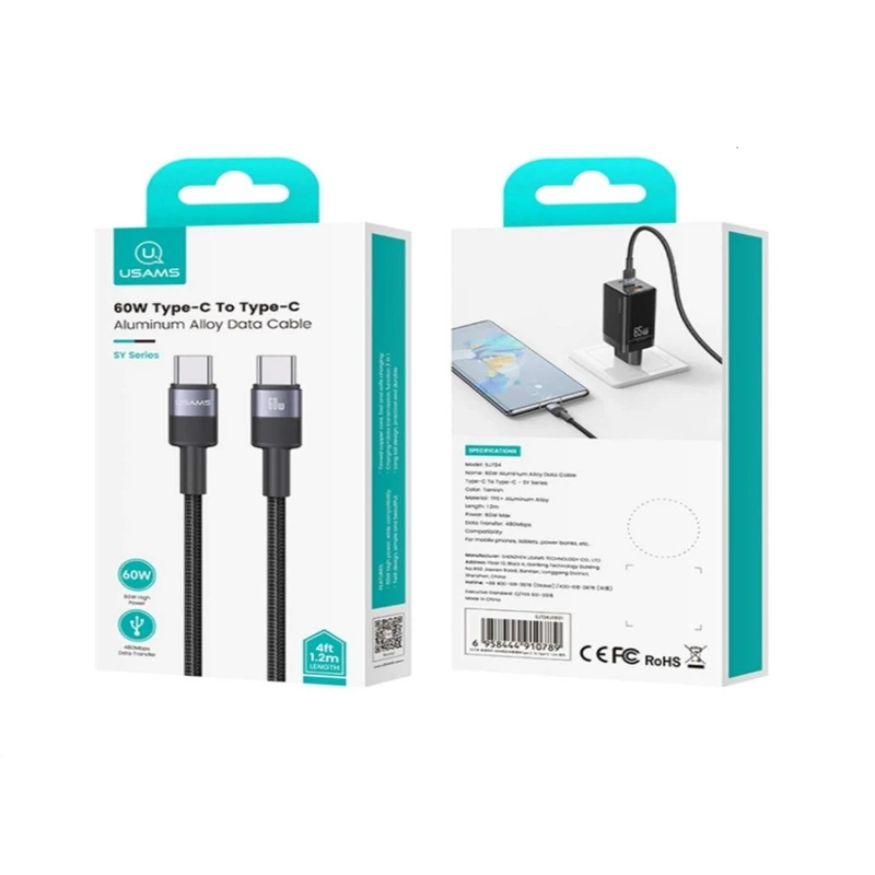 کابل تبدیل ۲سر تایپ سی برند USAMS مدل SJ724-60Wطول۱.۲متر