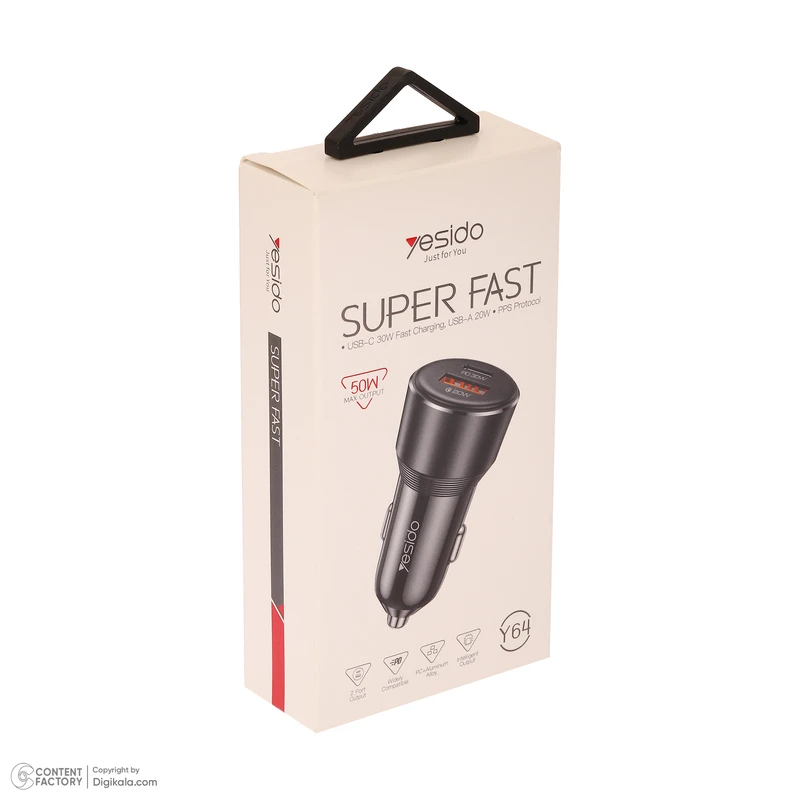 شارژر فندکی ۵۰ وات برند Yesido برند Y64