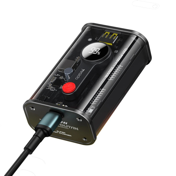 پاور بانک YP-۳۰ یسیدو با ظرفیت باتری:۱۰۰۰۰ میلی آمپر ساعت که دارای پورت های USB A، Lightning، USB C میباشد متریال ساخت این شارژر همراه از پلاستیک میباشد دارای نمایشگر نور LED میباشد و ورودی نوع C نیز دارد