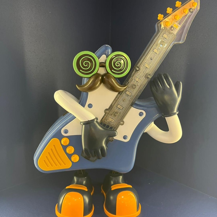 عروسک مسترگیتار یک وسیله موزیکال برای کودکان به شمار میرود که هم شکل جذابی دارد و با نورپردازی و آهنگ و حرکاتش حس خوبی را به کودکان منتقل می کند. این وسیله از طراحی یک گیتار به شکل یک عروسک جذاب و بانمک تشکیل شده است. چراغدار موزیکال حرکتی باتری خور
