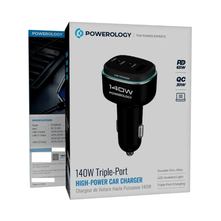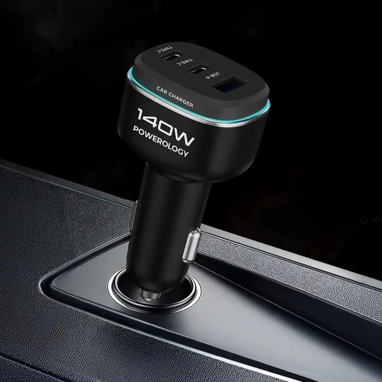 شارژر فندکی 140 وات 3 پورت برند Powerology مدل PCCSR025BKGY
